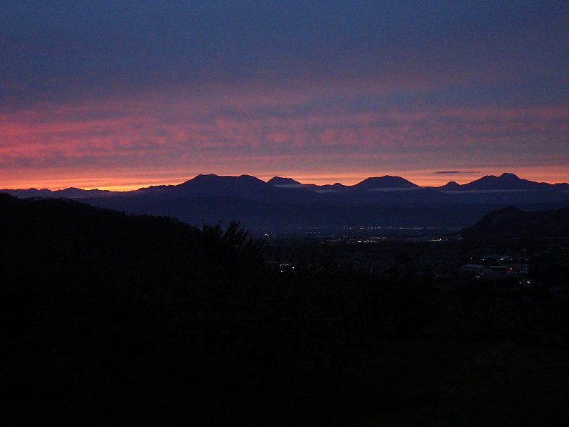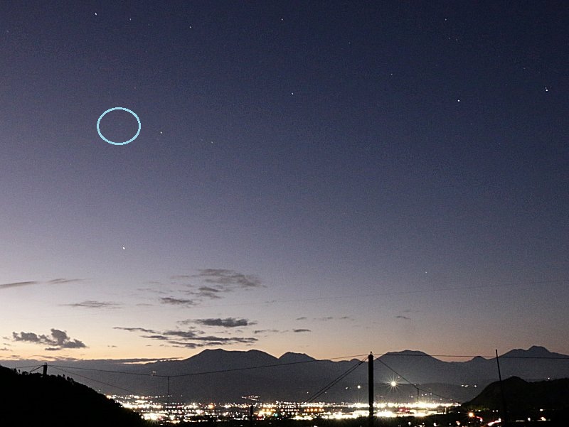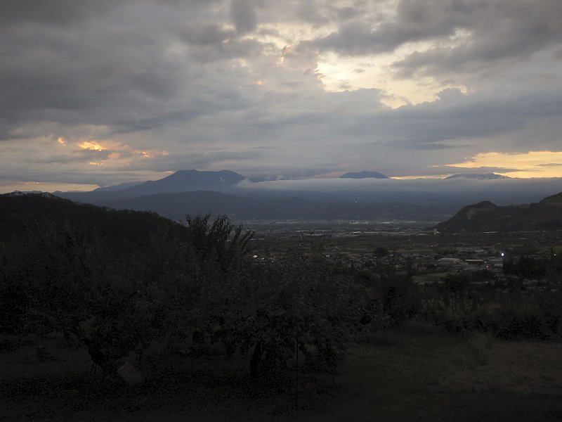今季一番の冷え込みで志賀高原の高い山などに初雪が降りました 日没後、北信五岳の裾に厚い霧が居座り、上空は雲が広がっています 山と雲の隙間でレモン彗星を見つけるのは難しそうです 【最低気温:1.0℃】【最高気温:15.5℃】 |