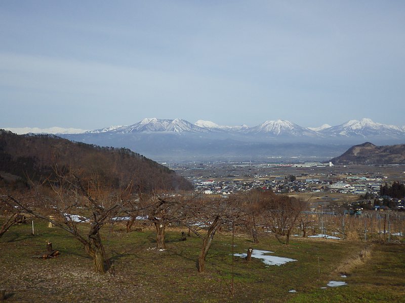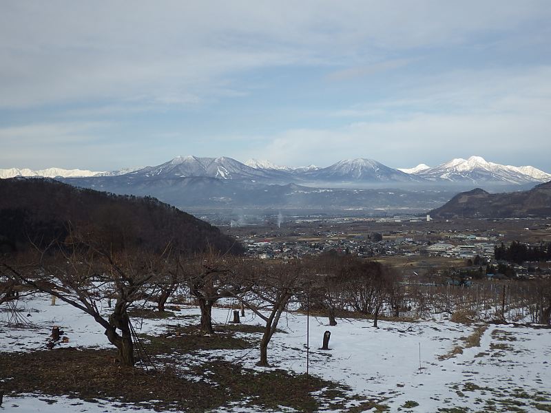 空がすっきりとは晴れず北信五岳は少し霞んでいます 日差しはあるものの冷たい風が強く吹くので寒さが身に沁みます |
