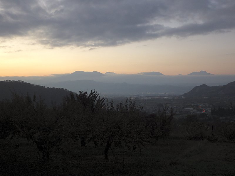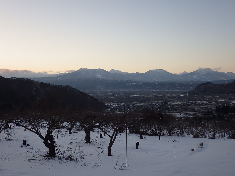 昼間は見えなかった北信五岳が夕方になってぼんやり見えるようになりました 今日から2月に入り明日は節分、明後日はもう立春で、ずいぶん日が長くなっています |
