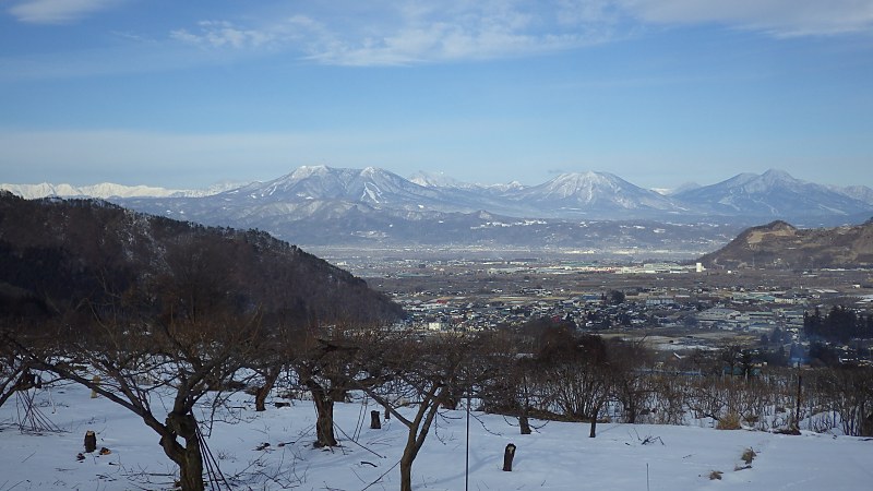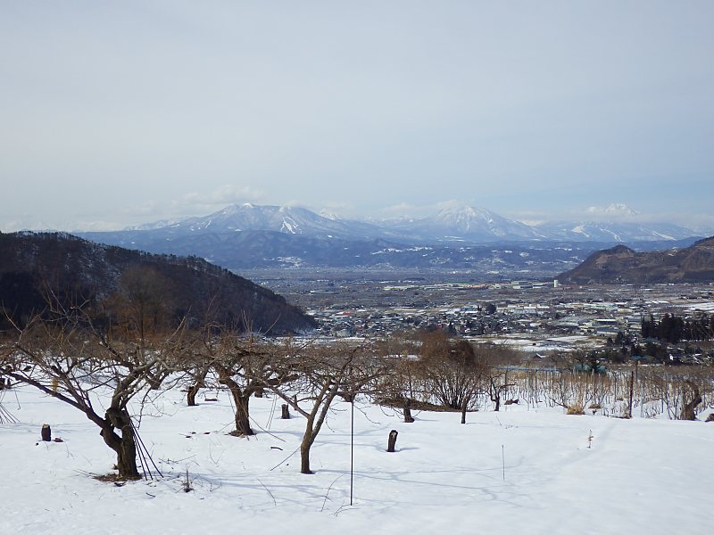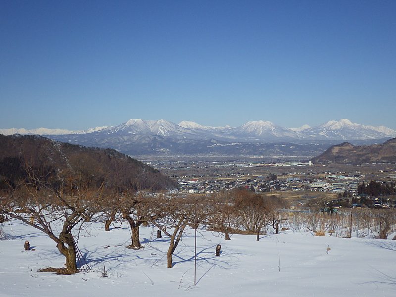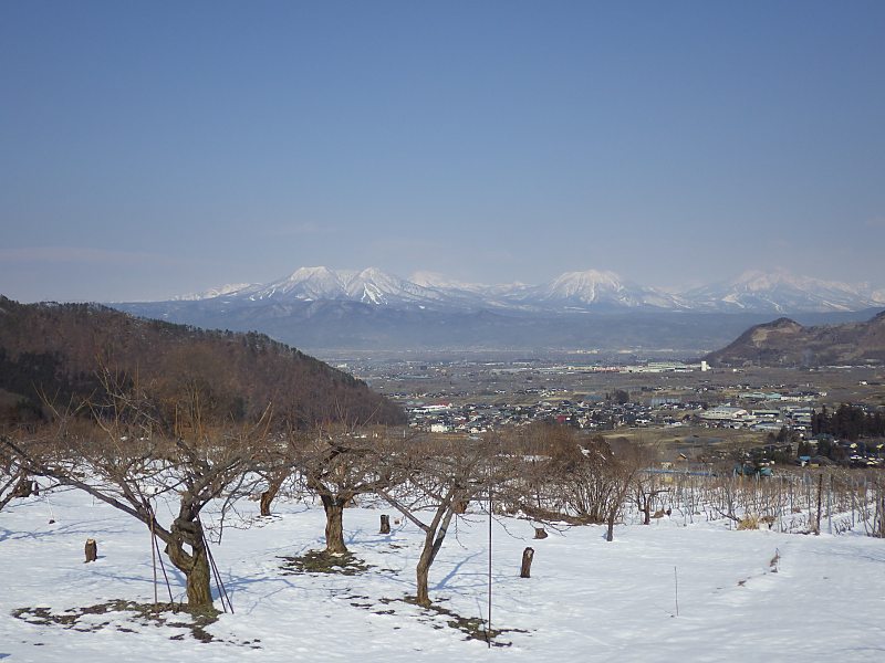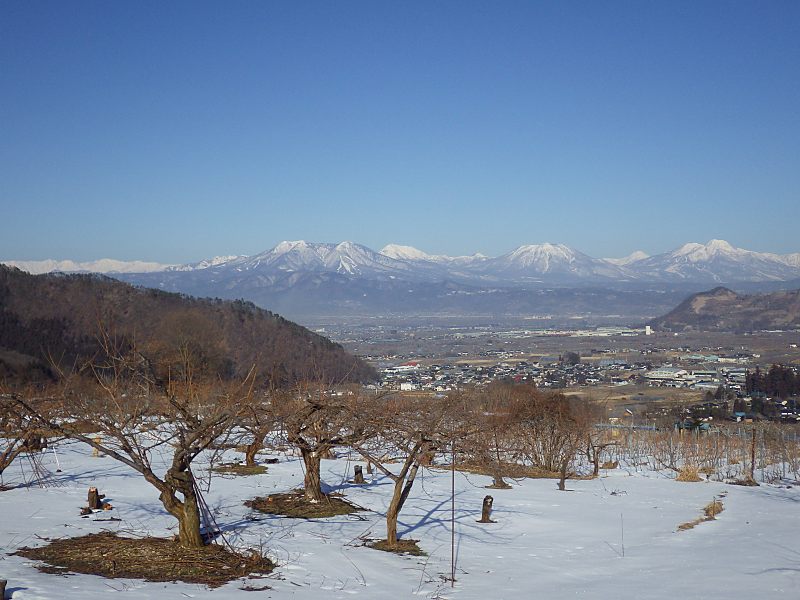 雲一つない穏やかな冬晴れで北信五岳と北アルプスがくっきり見えています 朝は畑に積もった雪の表面がガチガチに凍っていました 【最低気温:-5.9℃】【最高気温:7.8℃】 |