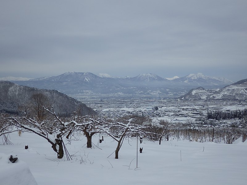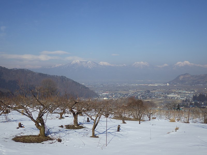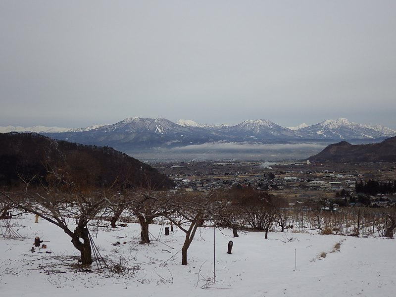 穏やかな冬晴れで北信五岳の雪はほとんど変わらないようです 収穫が終わったばかりのりんご畑からチェーンソーの音が聞こえ、もう来年に向けた作業が始まっています 【最低気温:-3.7℃】【最高気温:14.4℃】 |
