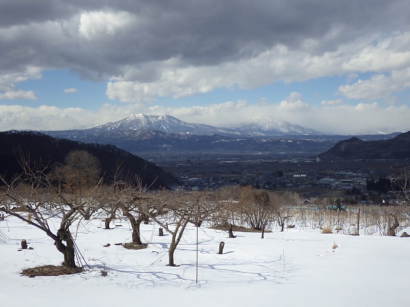 北信五岳を覆っていた雪雲が薄れてきました 日中は気温が6度くらいまで上がって日向ではポカポカと暖かく剪定作業が捗ります |