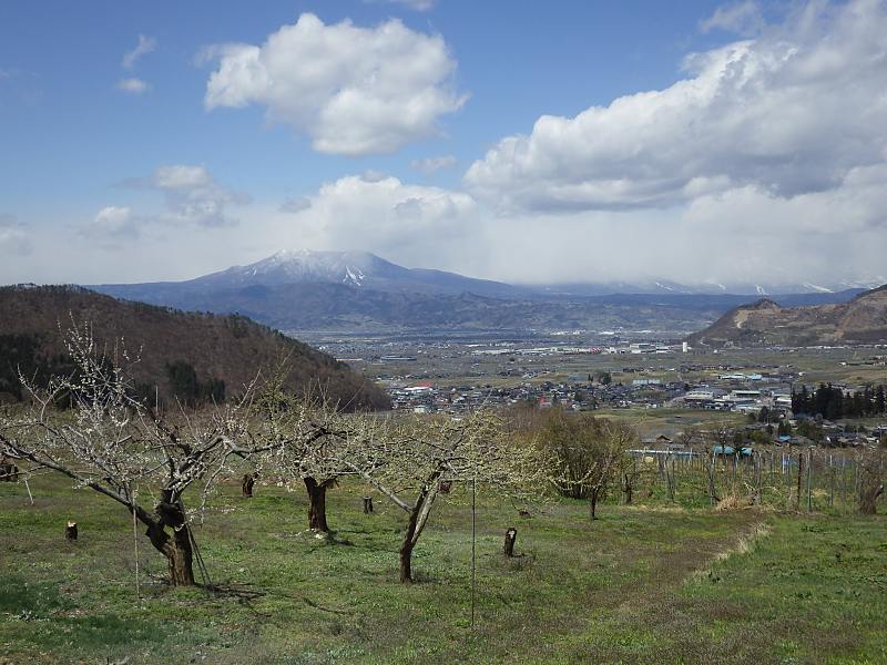 雲が多く黒姫山と妙高山の頂を隠しています 信州高山村桜まつりが始まっていて、桜めぐりトレッキングコースを歩く人々や道に迷って引き返す県外車を見かけるようになりました |