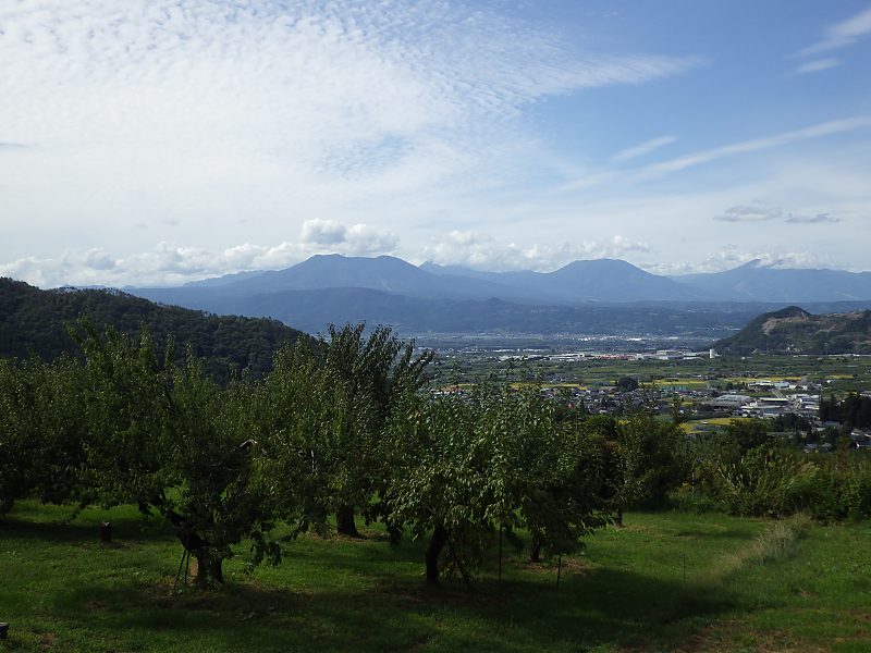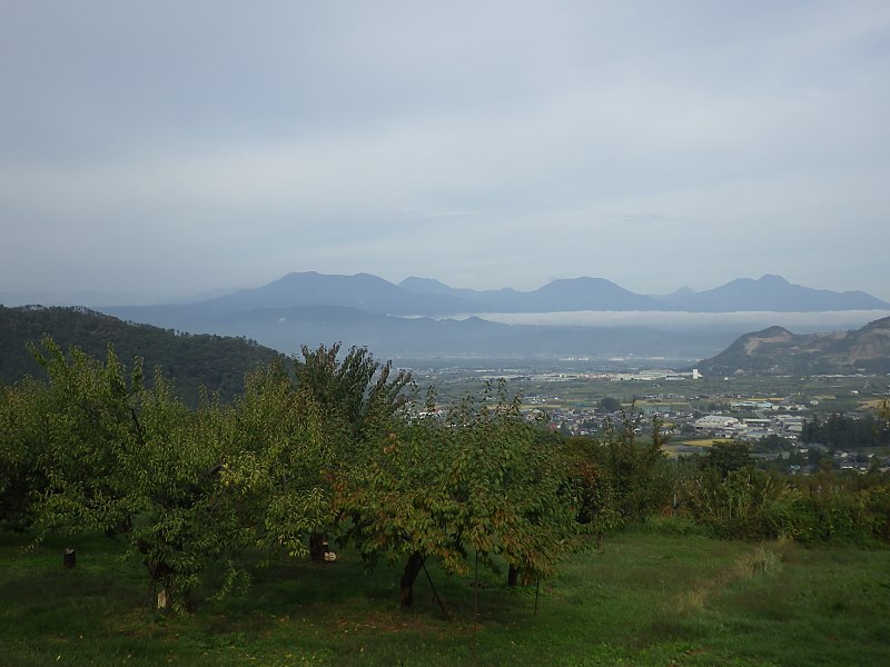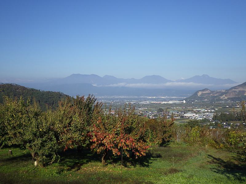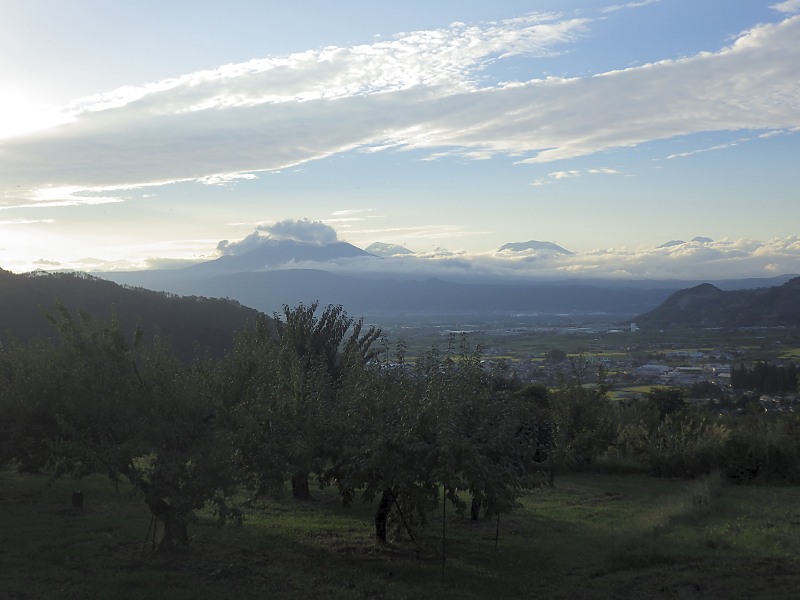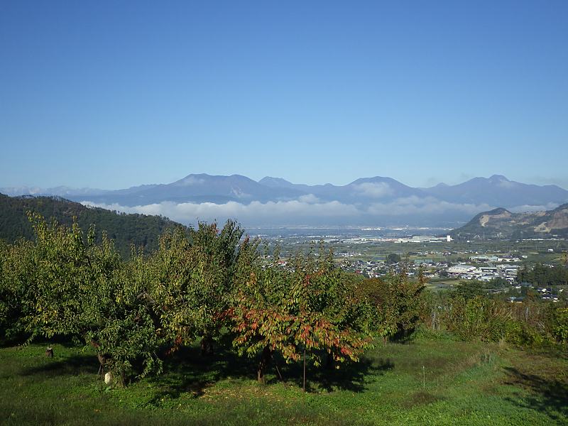 北信五岳の裾に霧が棚引いています 最低気温が10度近くまで下がり中生種リンゴの着色が進んでいます 【最低気温:10.5℃】【最高気温:26.0℃】 |