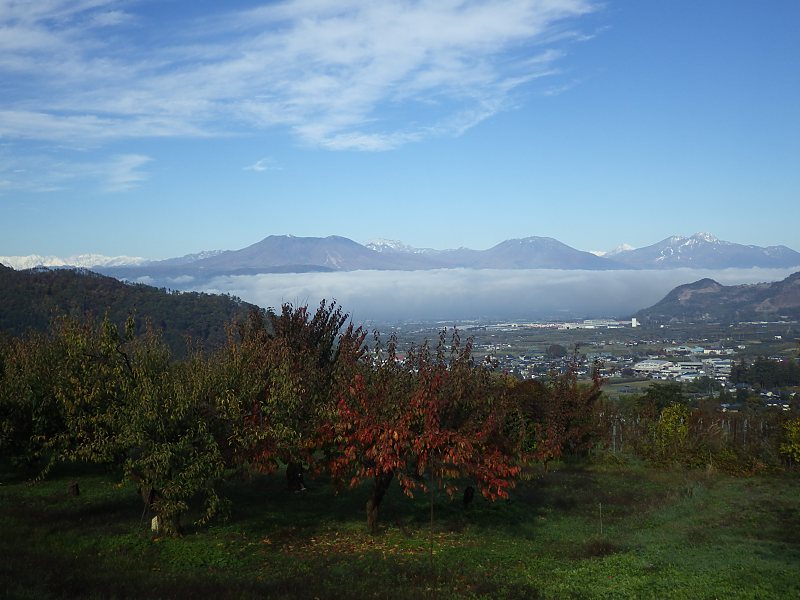 明け方に善光寺平を埋めていた霧は太陽が高くなるにつれて薄れましたが、昼近くになっても北信五岳の裾には薄く漂っています 厳しい冷え込みで、収穫が終わっていない《サンふじ》は凍結が懸念されます 【最低気温:-7.2℃】【最高気温:9.4℃】 |