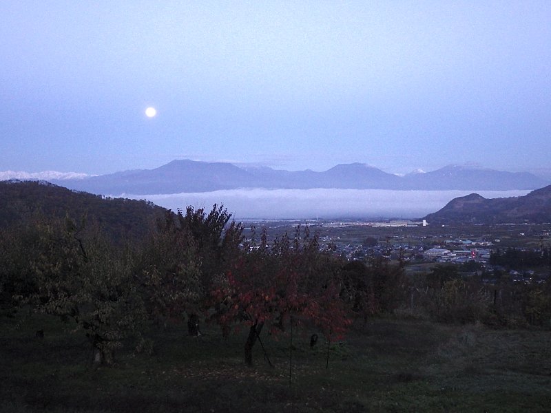 大きな満月が飯縄山に沈んで行きます 今年最も地球に近く最大に見えるスーパームーンの見納めです 【最低気温:1.9℃】【最高気温:19.7℃】 |