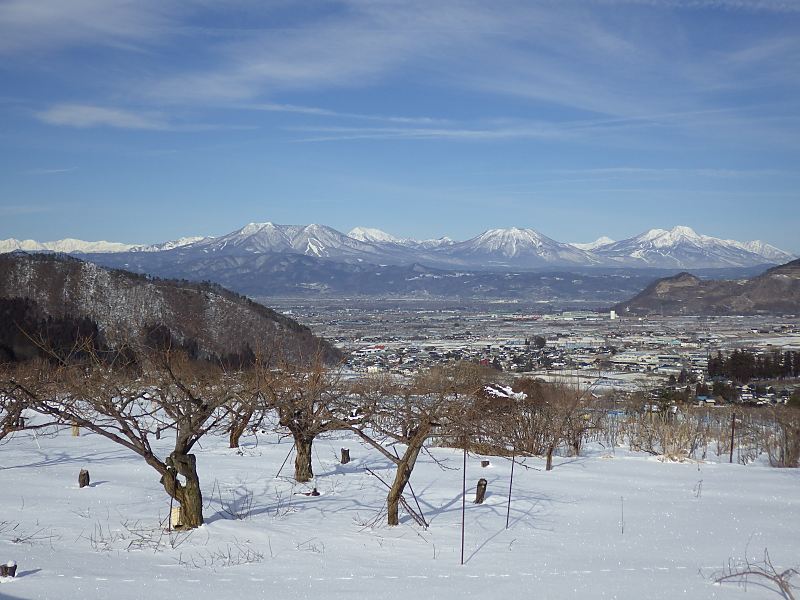 寒中らしい厳しい寒さの朝でした 午前中は曇りでも午後は晴れるという天気予報通り昼過ぎはよく晴れて北信五岳がよく見えています 【最低気温:-9.3℃】【最高気温:7.9℃】 |