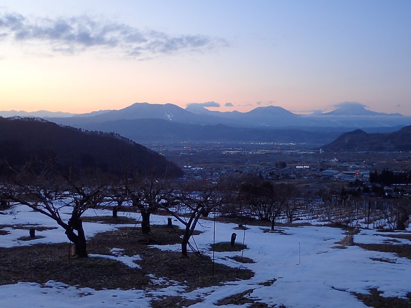 夕方になって雲が薄れ北信五岳が姿を見せました 寒さが緩んで今日は節分、明日はもう立春です 【最低気温:-2.4℃】【最高気温:5.3℃】 |